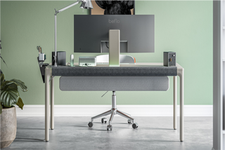 The Basalt monitor stand is designed to minimize spatial footprint by integrating directly into the Tenon structure.